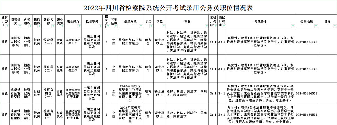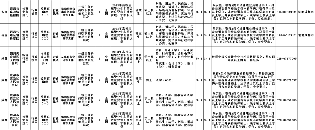 全省检察院系统计划招录328名
