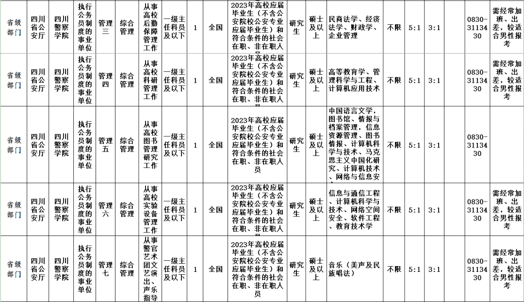 四川省市(州)、县(市、区)司法局计划招录246名,四川省监狱系统计划招录58名,四川省司法行政戒毒系统计划招录44名,四川司法警官职业学院计划招录5名,共计353名。