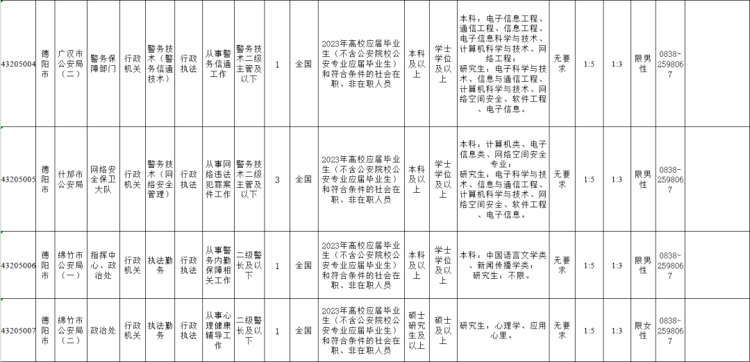 公务员(人民警察)20名