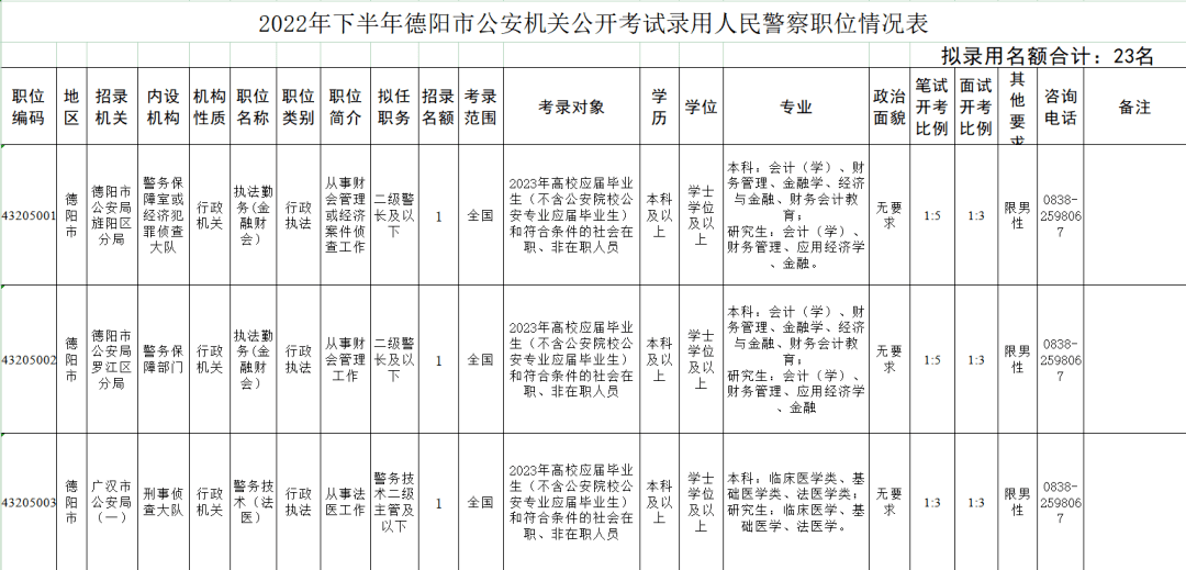 公务员(人民警察)23名
